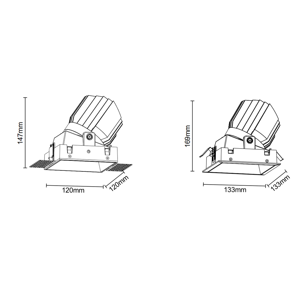Square recessed downlights are ceiling-integrated luminaire designed for a streamlined, contemporary aesthetic. Featuring a square aperture, they are available in multiple form factors, power ratings, and correlated color temperatures (CCT). Offering both ambient and accent lighting options through various beam angles, they provide a flexible solution for residential, retail, and commercial environments requiring efficient, low-profile illumination